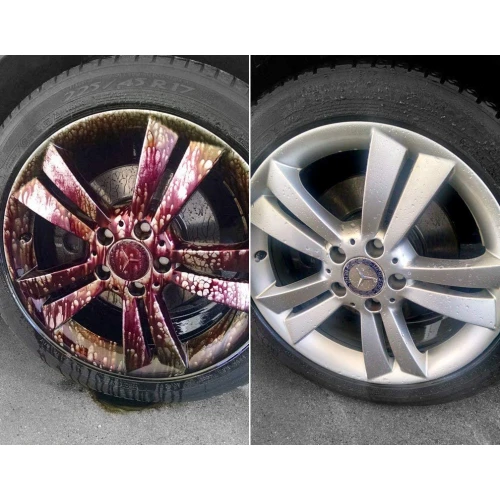Odstrani čisto vso umazanijo katera vas moti (tiste črne in rjave pikice oziroma madeži). Vsebuje indikator delovanja, obarva se namreč rdeče med njegovim delovanjem. Prijazen je do ventilov ter vijakov. Primeren je tudi za TPMS ventile. Ne vsebuje kislin. Očisti porumenele in črne madeže ter odstranjuje zračno rjo. Očisti tudi porumenelost in umazanijo na okrasnih pokrovih. Za učinkovitejše čiščenje je priporočljiva uporaba čopiča ter visokotlačnega čistilca, v primeru trdovratnejše umazanije postopek ponovimo. Priporočljiva je uporaba tople vode in visoki pritisk, da kar najlažje odstranite umazanijo.