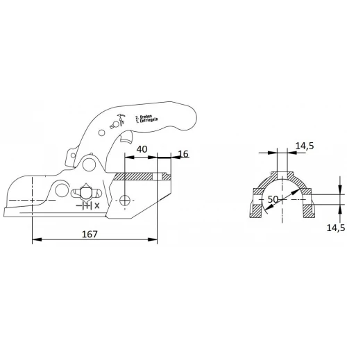 Opis:Kroglična sklopka priklop za prikolico okrogla 50mm 2700Kg Knott, primerna za naletno zavoro. I..